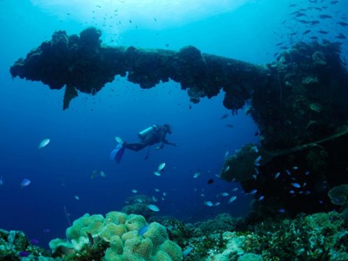 Visitors to Chuuk fly into the airport on the island of Weno, where they are instantly rewarded with views of lush rolling hills, and the simple lifestyle of the region’s scant population of just 50,000 native residents. In addition to land-based dive operations that visit the area’s most popular sites on a daily basis, divers can also take advantage of scuba packages offered by liveaboard vessels like the Truk Odyssey and the SS Thorfinn, both of which service the wreck sites of the Truk Lagoon. The Odyssey runs a seven day tour of the lagoon and its neighbouring islands and dive sites, while the Thorfinn can be boarded any day of the week, even for shorter durations. These trips are great for groups, and provide all the necessities for a comfortable and relaxing dive vacation. As an alternative, visitors may wish to stay at the Blue Lagoon Resort, Chuuk’s official dive resort location. Also located on Weno, vacations arranged through the resort include transportation to and from the airport, and feature dive boats that depart right from the resort dock.